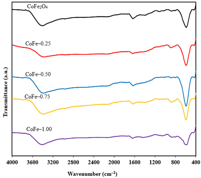Figure 2.Figure 2. FTIR spectra of as-prepared CoFe catalysts