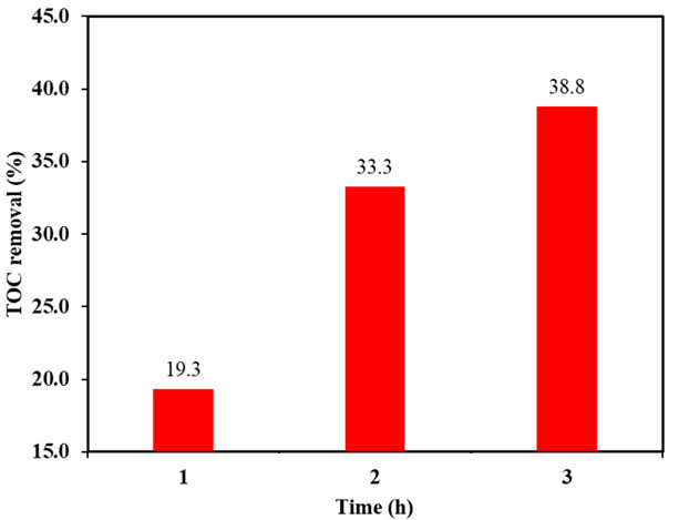 Figure 6.Figure 6. TOC removal by CoFe2O4 (Conditions: pH = 7.0, [PMS] = 0.20 g L−1, [CoFe2O4] = 0.20 g L−1, and [AO7] = 10 mg L-1)