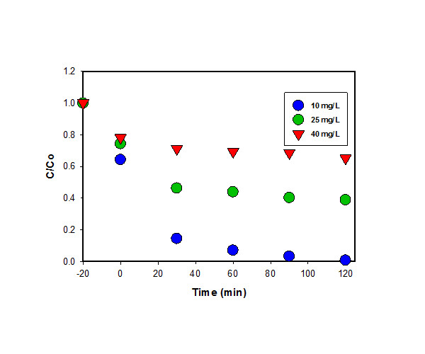Figure 9.Effect of MB concentration on the photocatalytic degradation of MB. Reaction condition: [CeFeO3/SBEe catalyst concentration] = 1.0 g/L, [pH] = 7