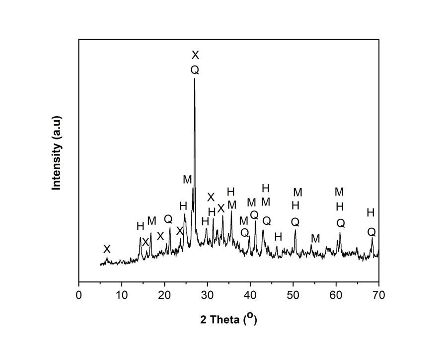 Figure 2.Figure 2. XRD diffractogram of zeolite in powder form (H = hydroxysodalite; X= NaX; Q = Quartz, M = mullite)