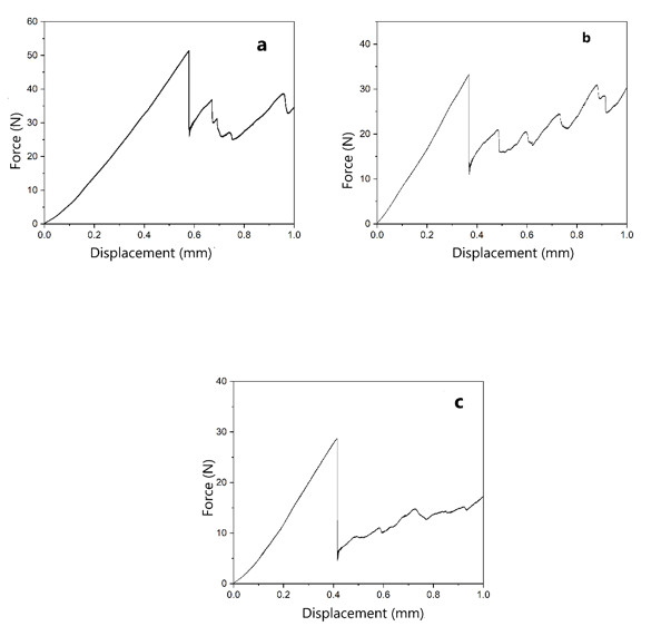 Figure 3.Figure 3. Force-displacement curve of (a) ZP5; (b) ZP9; (c) ZP10